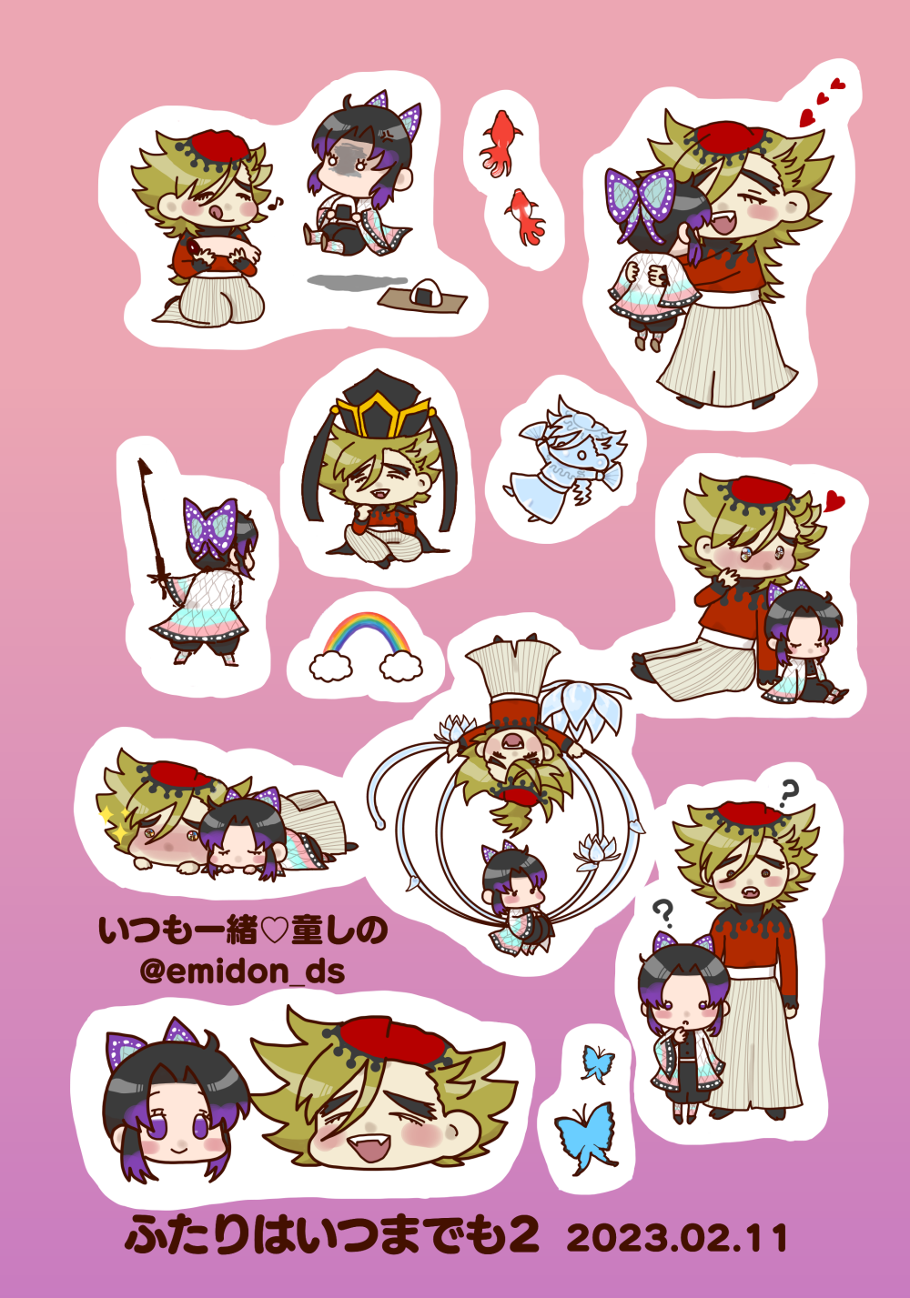 デフォルメ絵だからと珍しく童しのの背丈を揃えて描いてみましたが自分の中で違和感が半端ないのです……( ´•ω•`)ウ-ン